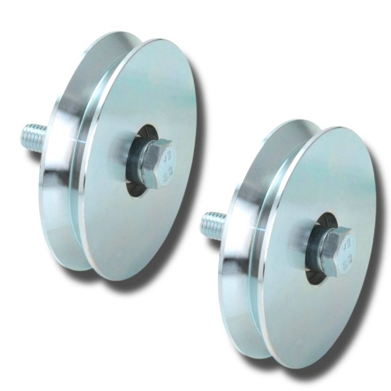 La rueda en V de 100 mm de diámetro es una solución confiable y eficiente para sistemas de deslizamiento en rieles metálicos. Diseñada para soportar cargas de hasta 220 kg por rueda, garantiza un desplazamiento suave y seguro en portones correderos y estructuras industriales.